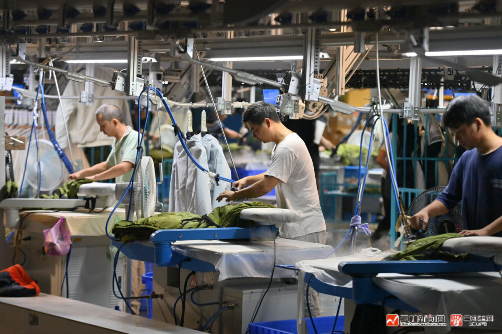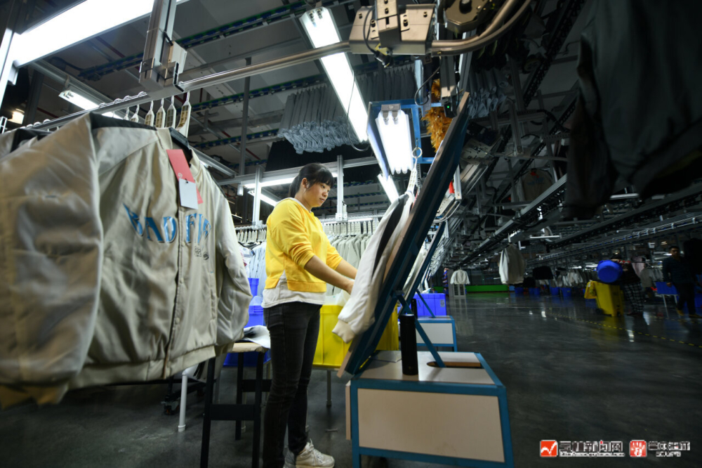 北流市“玉商回归产业园”一家服装生产企业,工人在生产线上作业。