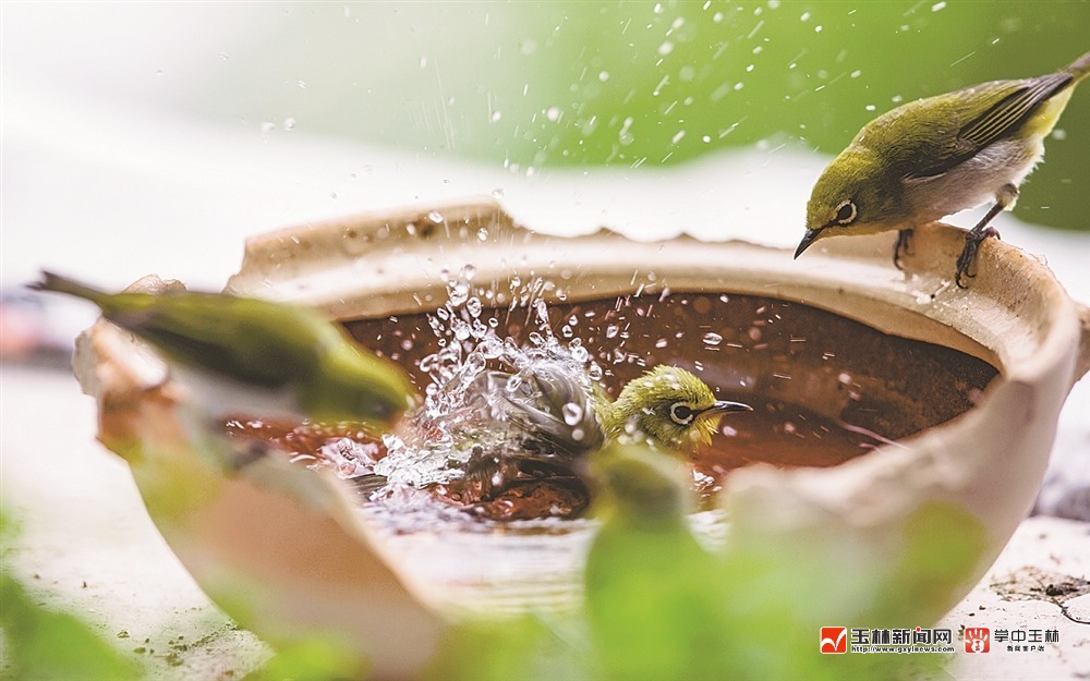 庞甲章是一名摄影发烧友,尤其喜欢拍鸟,以前经常和其他摄友到处追寻鸟的踪影。一次偶然的机会,一声声细碎的鸟叫声从自家阳台外传来,庞甲章抬眼望去,一只只小鸟在枝头翻飞嬉戏。原来鸟就在身边!庞甲章如获至宝,他寻思着,如果能把自家阳台变成鸟的“餐厅”,就可以获得更多拍鸟的机会了。于是,他在阳台上安置了一个喂鸟筒,买来菜粉虫每天定时投料。一开始,鸟儿没有什么反应,渐渐地,有鸟儿试探性地啄食,后来便养成习惯。如今,每天都有好几十只鸟过来“吃饭”。为了吸引太阳鸟,庞甲章还在阳台上专门设置了一个喂鸟装置,喂的是蜂蜜水。