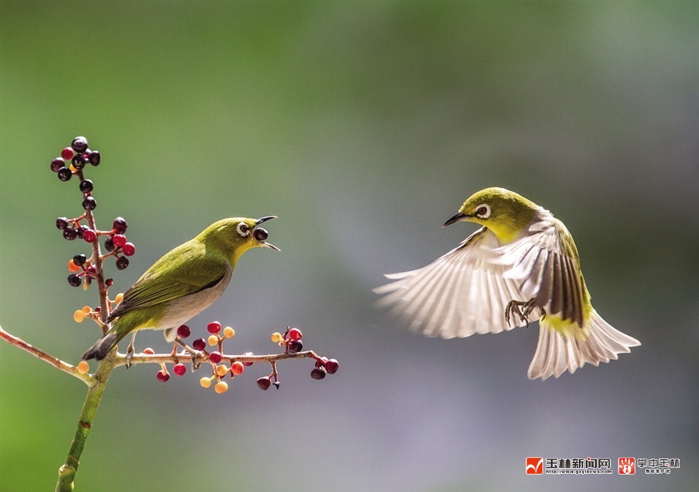 ▲庞甲章的摄影作品《绣眼》曾入选《大众摄影》。