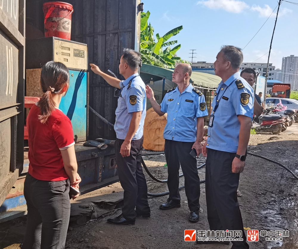 玉林新闻网-玉林晚报讯(记者 温驷昌)6月28日,根据上级移交的线索,市场监管、公安、经贸等博白县成品油非法经营领导小组成员单位组成联合检查组,对博白县城区某涉嫌成品油非法储存点开展联合执法行动,取得积极成效。