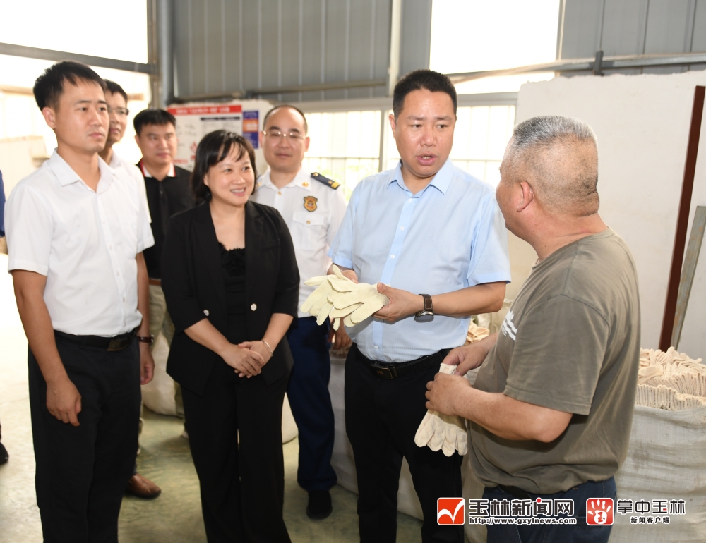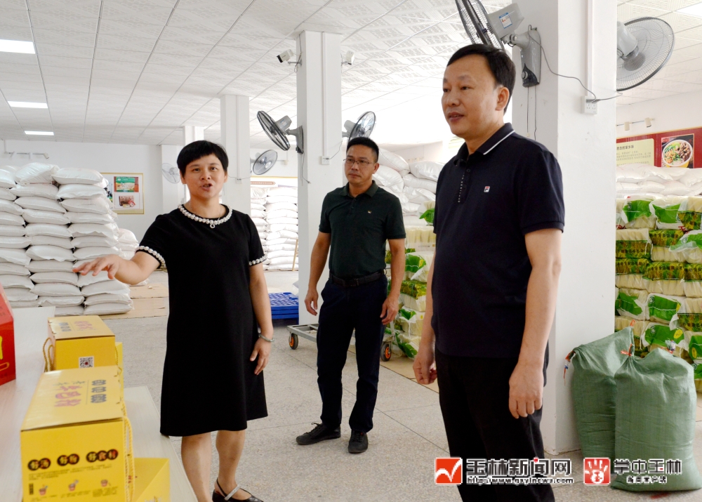 玉州区委副书记、区长莫景彪(右一)到企业了解生产销售情况。(玉州区委宣传部供图)