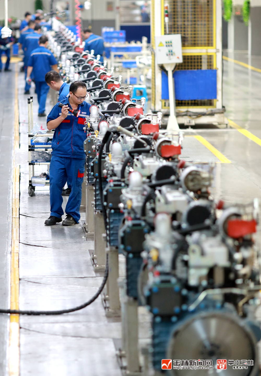 已装配完成的玉柴发动机流转下线。(记者 陈东 摄)
