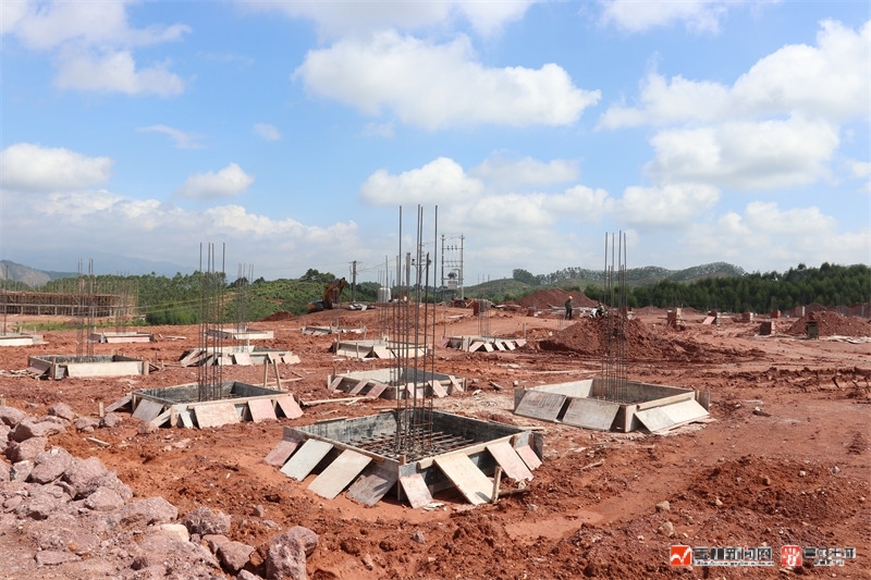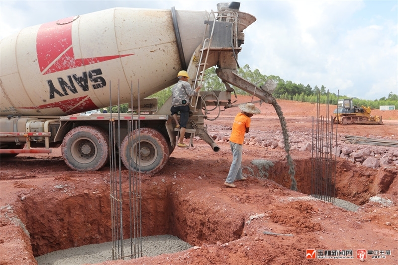 玉林新闻网-玉林日报讯 近日,位于石寨镇古兆村的容县黄羽鸡现代种业产业园项目建设现场,吊机、挖掘机、混凝土搅拌车轰鸣作响,浇筑、挖土、绑扎钢筋等各项工序正在紧锣密鼓地进行着,施工现场一片火热。